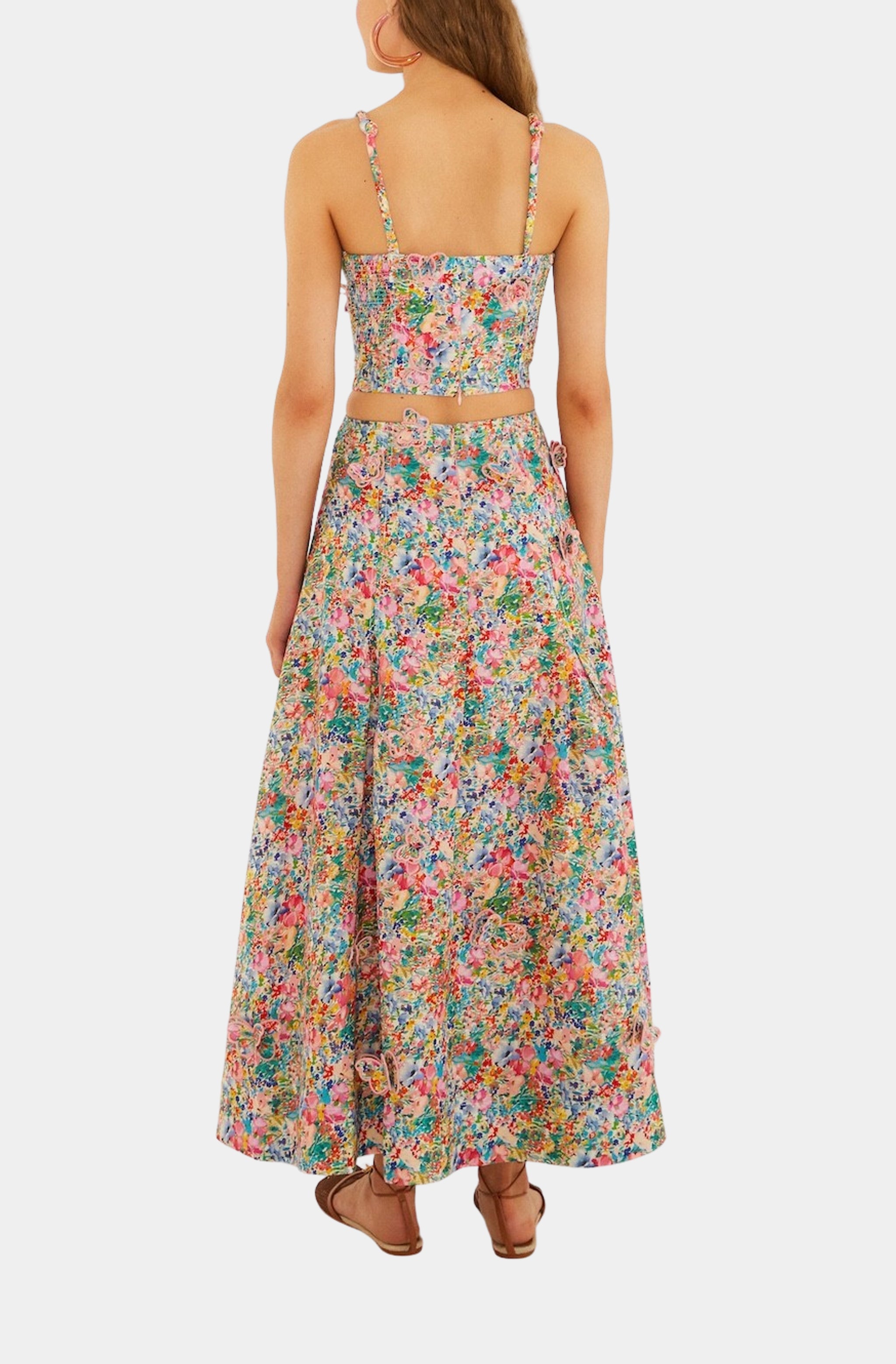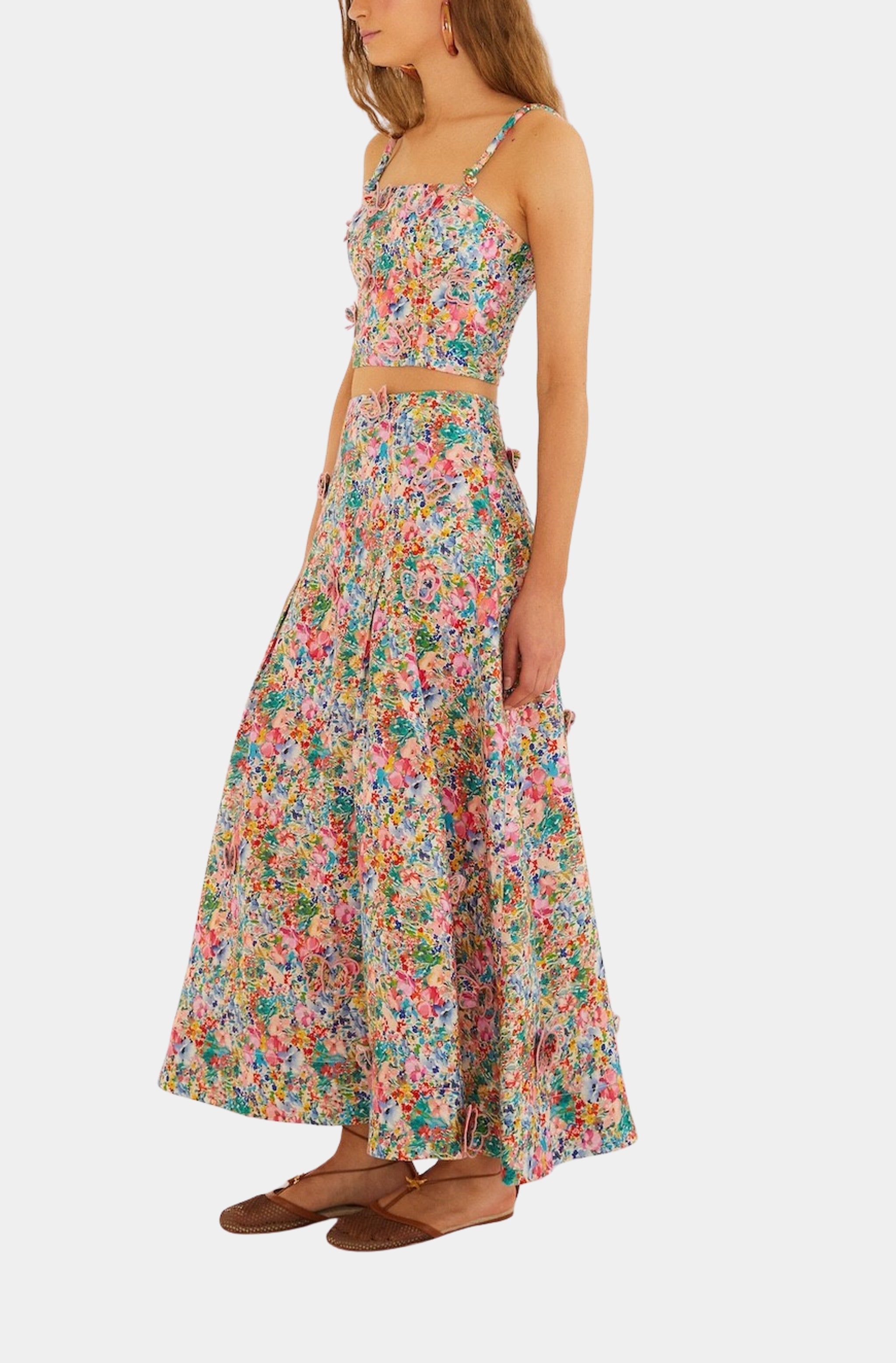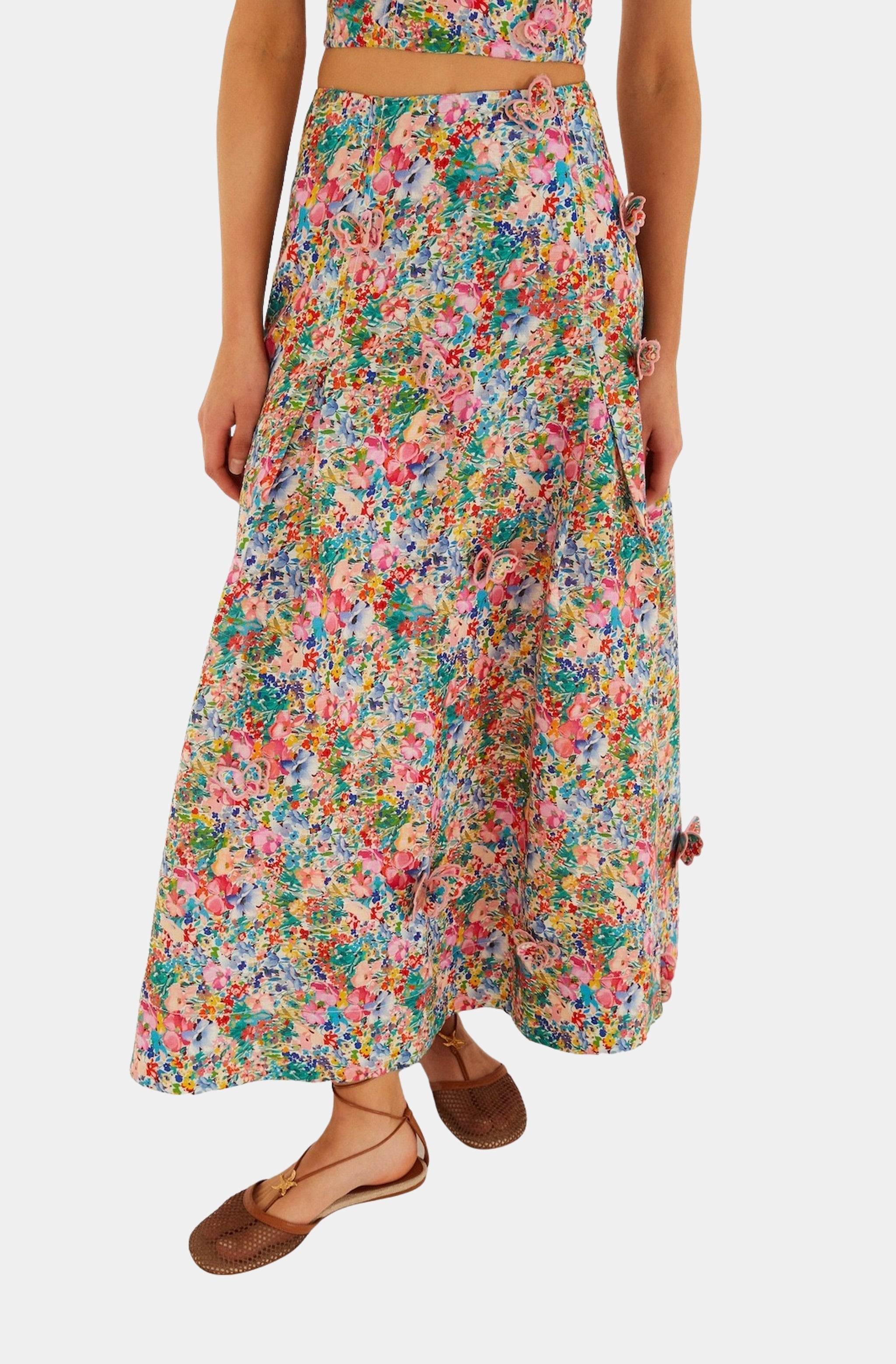 Farm Rio Peasant Floral Off-White Butterflies Maxi Skirt